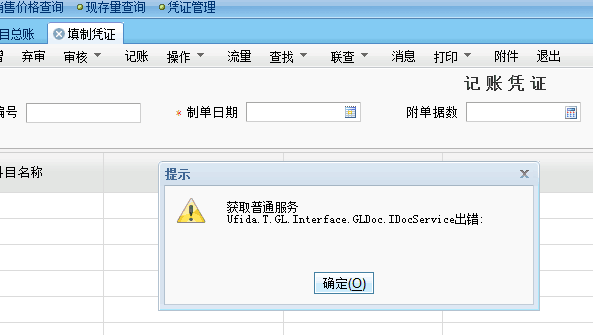 用友t3填制凭证或点凭证管理会出现提示:获取普通服务Ufida.T.GL.Interface.GLDoc.IDocService出措