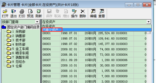 a、在“固定资产”--“卡片”--“卡片管理”--“已减少资产”中,选中需要撤销减少的卡片。