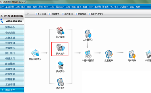 操作步骤(U8/T6/T3固定资产减少操作步骤相同,此处以T3为例):