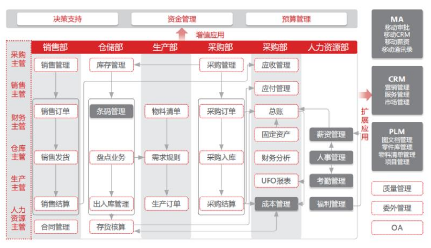 • 计划部通过LRP规划生成采购、委外计划,采购部根据该计划形成采购和委外订单。采购方面,根据采购订单办理入库,检验完成后打印条码并扫码入库;委外方面,根据委外订单进行发料,委外完后进行验收扫描条码入库。上面的 采购、委外业务入库完后,要对供应商和委外商付款,确认库存成本和挂应付帐款,并在总帐中生成凭证。