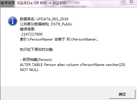 T6打最新补丁执行脚本成功后,进帐套要在系统管理中升级数据库,在升级数据库时提示错误,怎么解决?
