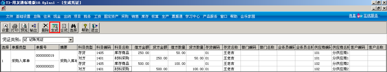 b)、发票制单(点击“供应商往来制单”-选择“发票制单”)