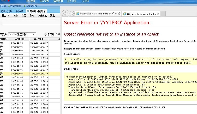 T+软件对账单导出excel报错
