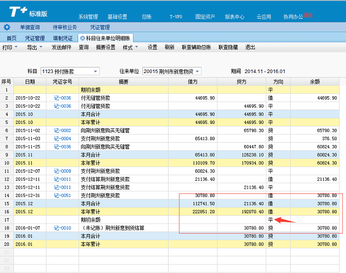 T+标准版年度结转后,期末有余额,但期初是平的,这是怎么回事啊?