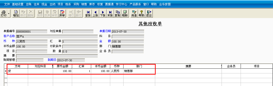 (5)代垫费用单审核后在“客户往来”-“应收单”中自动生成已审核的“其他应收单”。