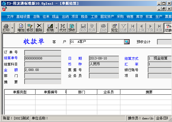 A.点击“收款单”选择客户A,就会出现以下界面: