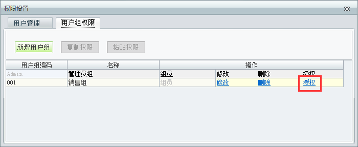 2、软件里面不能对单个用户权限进行修改只能对其所在用户组权限进行修改。打开用户组权限点击后面的"授权"选项。