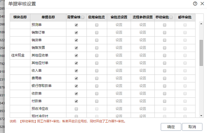 2.查看【系统管理】-【单据审核设置】,检查单据审批流情况,均无此用户账号待审批流程。
