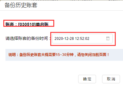 输入管理员账号收到的验证码,进入到备份历史账套的操作,可以选择最近7天的任意时间点的备份: