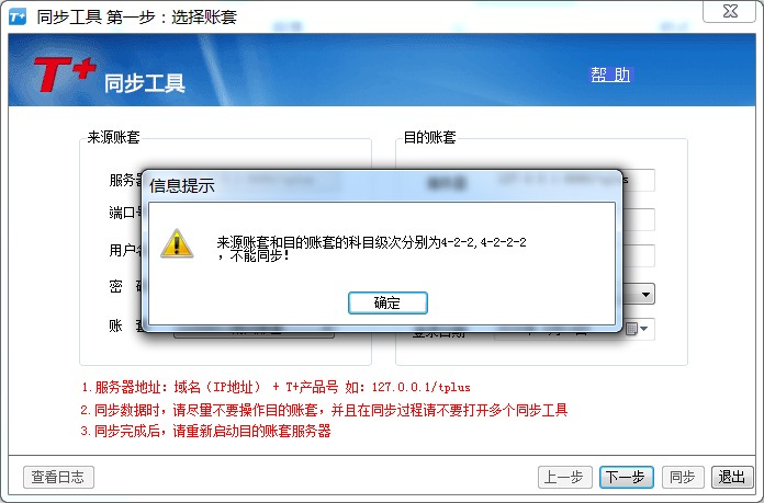 4、若已有基础档案,同步时需保证来源账套和目标账套中的相关信息完全一致。