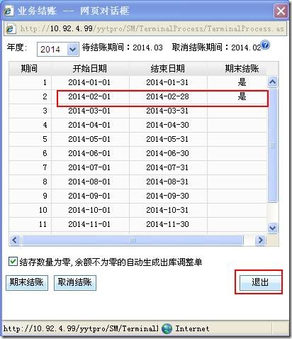 4、可以看到对应的会计期间“期末结账”已经打上“是”的标志。点击“退出”即可。