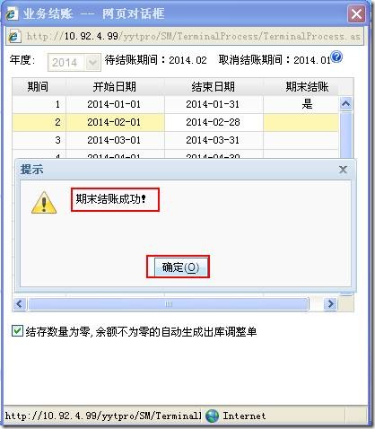 3、当符合结账条件时,提示“期末结账成功”