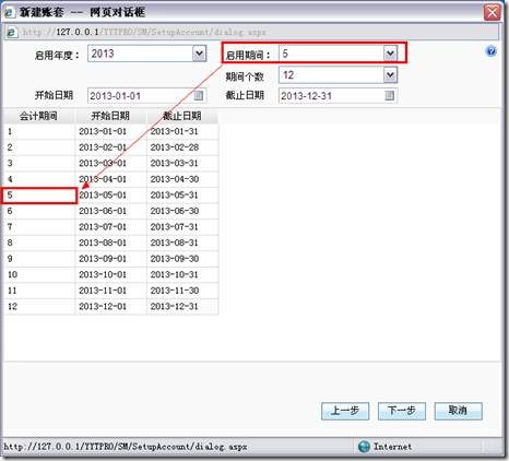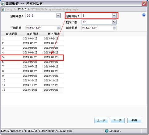 (2)先将开始日期和截止日期的“日”更改为会计期间的第一天和最后一天,如图开始日期为2013-01-26,截止日期为2014-01-25