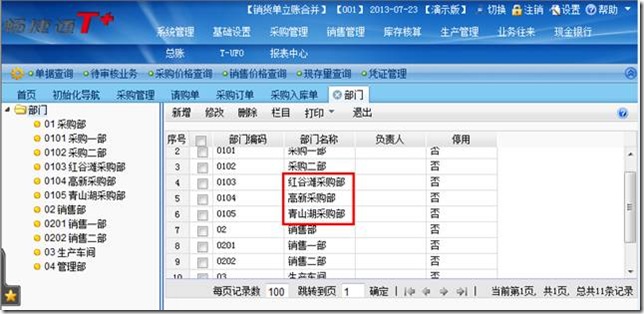 5、 将请购单、采购订单、采购入库单、进货单上的部门字段调出。