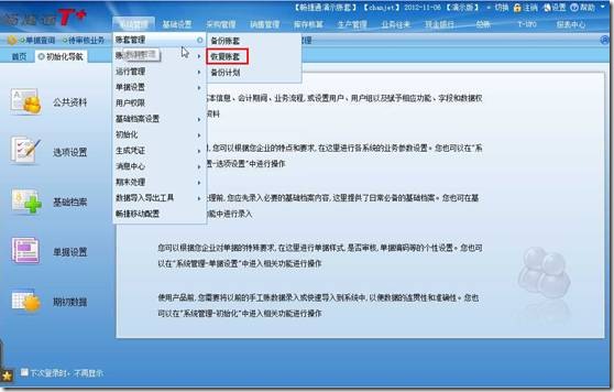 方法三:账套主管恢复(只能恢复当前登陆账套)