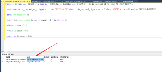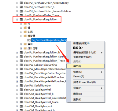 举例:关闭上图中查询出来的Pu_PurchaseRequisition中的触发器Pu_PurchaseRequisition_Audit