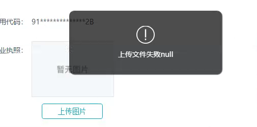【问题现象】:认证在上传营业执照提示上传文件失败null