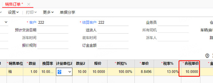 T+存货是多计量的,1箱=10个,假设一箱为10元,做单时切换且计量单位为个,带出的价格不是1而是2