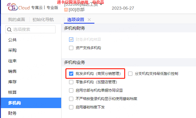 需要在系统管理-选项设置-多机构中启用,批发多机构:
