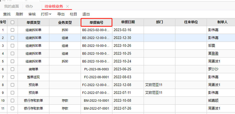 点击待审核业务,双击单据编号无法穿透查看单据明细,点后面的单据日期或者其他字段正常?