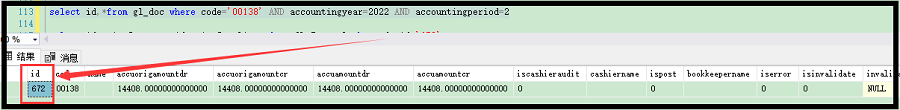 1、通过语句查询出凭证的ID。