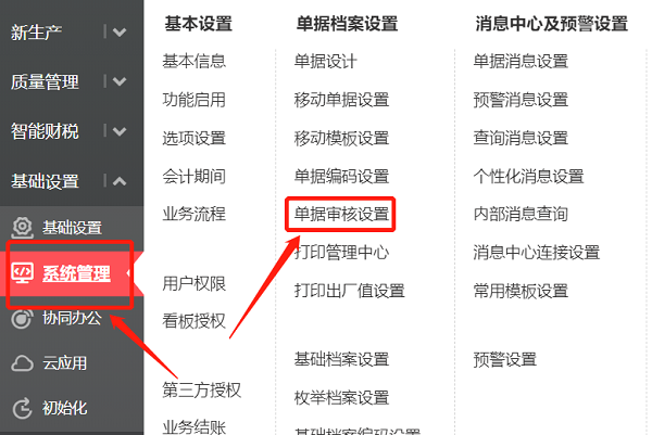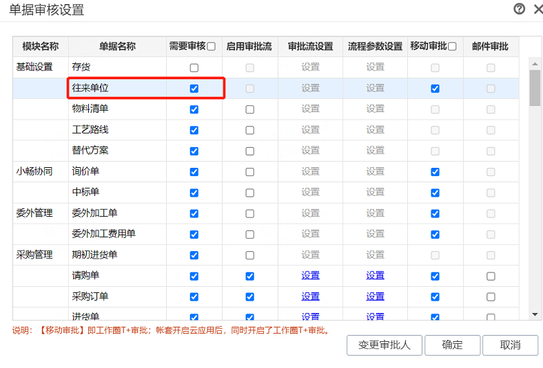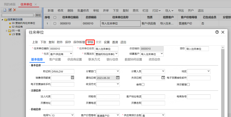1、在【系统管理】-【单据审核设置】中查看【往来单位】是否设置了需要审核