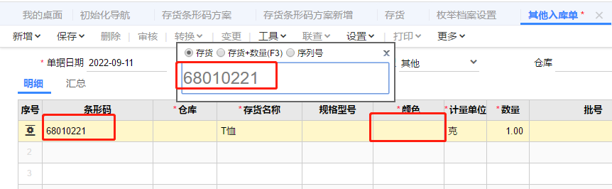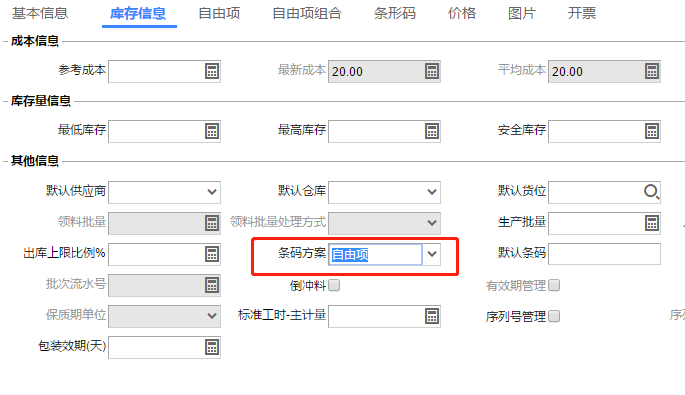 设置好了有自由项的存货条码方案,做单时录入条码带不出自由项