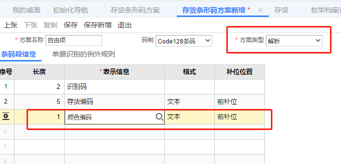 1、设置一个带有自由项的条码解析方案。