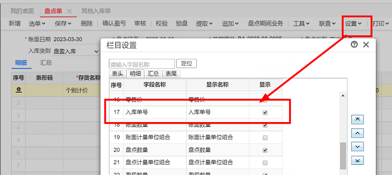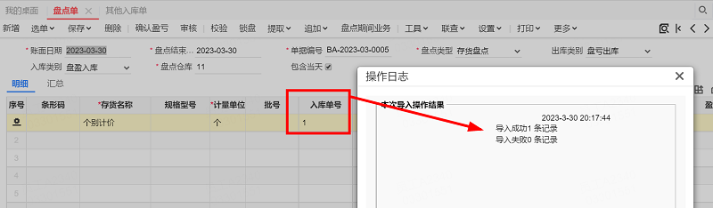 个别计价存货也支持导入盘点单,在单据设置中勾选显示入库单号,导入时维护存货入库单号即可。