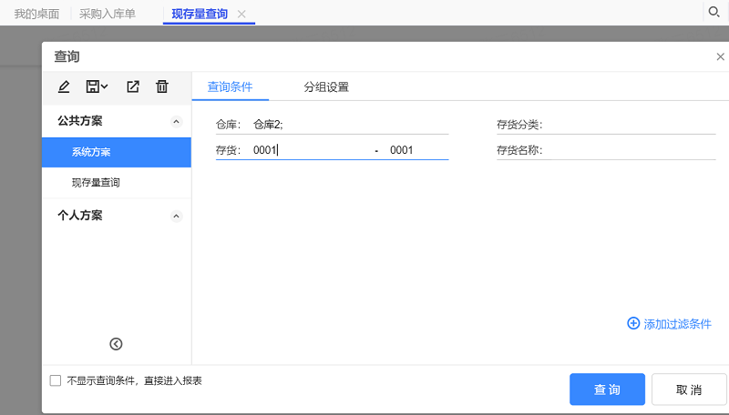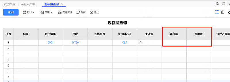 做了一张采购入库单,单据也审核了,但是在查询现存量查询的时候,里面没有数据