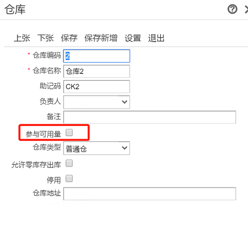 3、检查发现是仓库的参与可用量选项没有勾选。