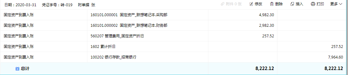 ②再按收到的发票金额重录新增及折旧分录;