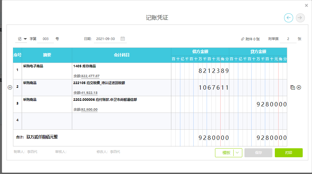 如上图,同一供应商的2张发票合并生成了一张采购凭证。同理销售发票也是一样的操作,这个功能帮助会计小刘在记账方面节省了大量的时间