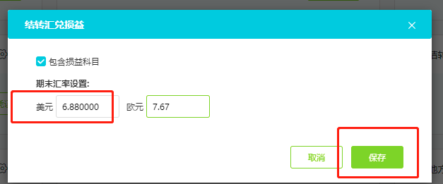 点击【结账】-【期末结转】-输入期末汇率-点击【测算金额】-【生成凭证】