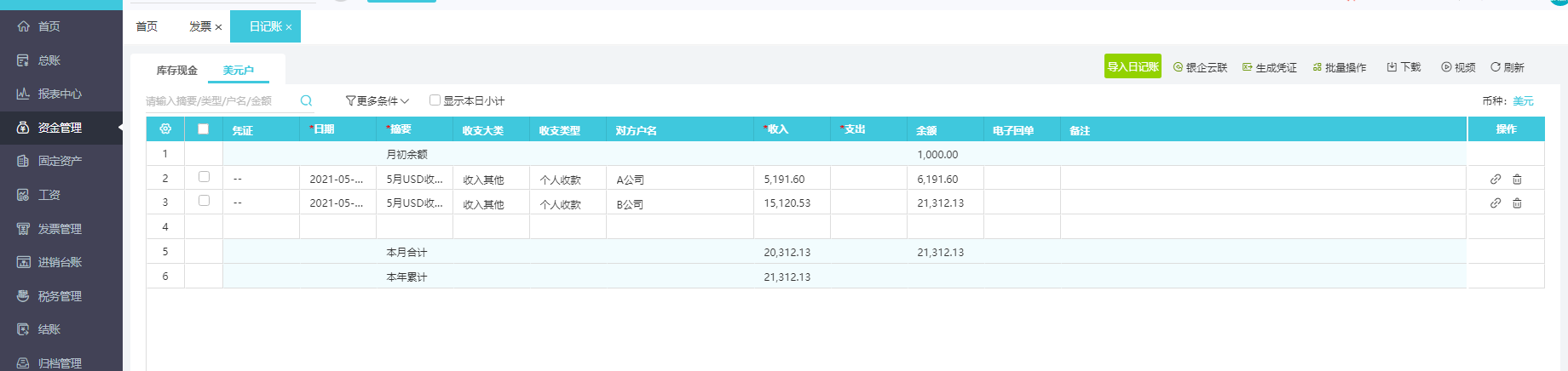 五金服宝贸易有限公司随着业务的不断扩大,涉及到很多的外贸业务,于是开具了外币的账户,想要在账务处理中实现外币核算的功能。别担心!好会计/易代账的日记账模块可以实现外币核算的功能。