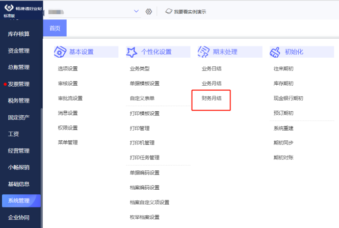 如果需要变更已月结月份的财务数据,可以操作反月结。