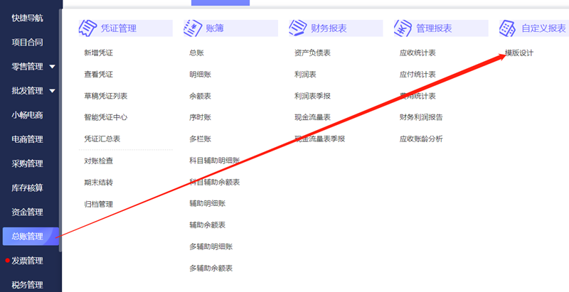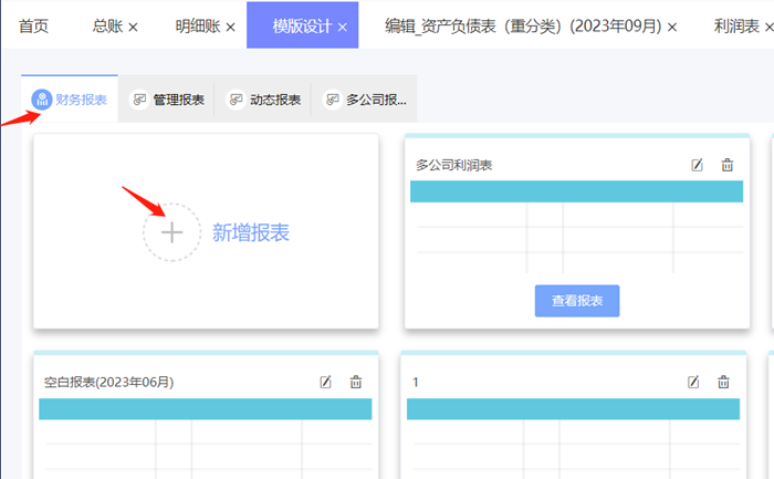 1.点击【总账管理】-【模板设计】-【新增报表】,选择需要的使用模板。