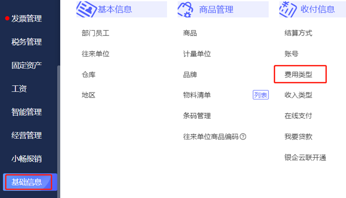 1、【基础信息】-【费用类型】-【新增费用类型】,【是否报销】一定要勾选上,如果不勾选,即使费用名称是建立在小畅报销分类里,报销单上也是选不到的。保存之后,刷新页面。
