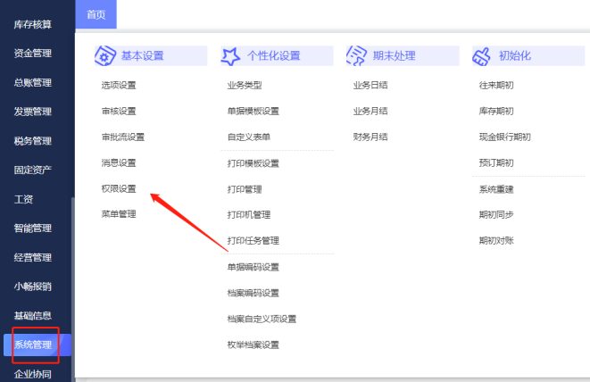 ① 将需要修改他人凭证的用户在权限设置中添加入会计角色权限中。