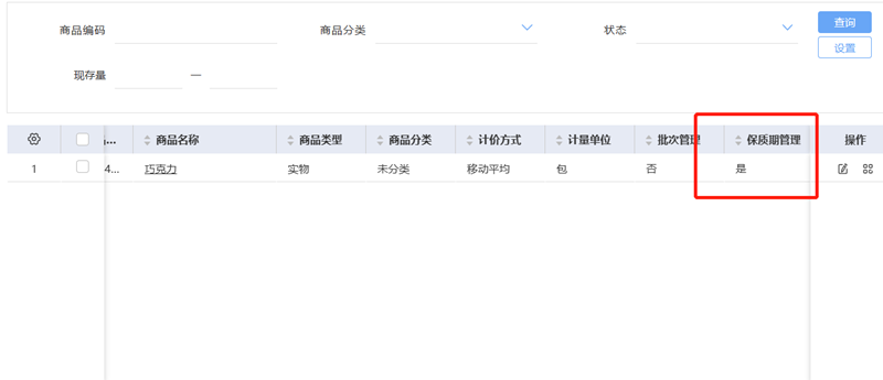 1、检查基础信息-商品,该商品是否为保质期商品;