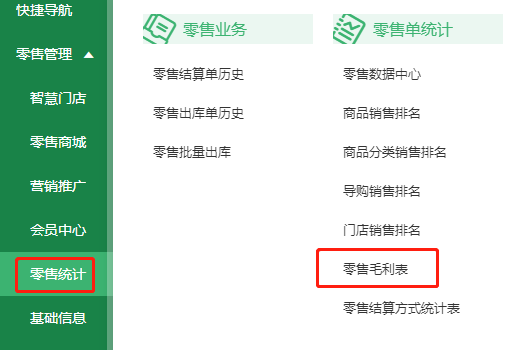 零售统计-零售毛利表,可以自己增加个查询方案。