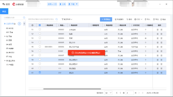 客户刚开始设置了离线收银,pos端下载了商品信息,然后去好业财界面删除商品信息提示离线状态无法删除,后面取消离线收银,删除的时候提示POS端离线已下载不能删除。