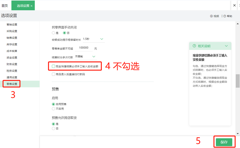 POS端收银界面现金结算时如何自动带出应收金额?当收的现金与应收金额不一致时才手工去修改实收金额(即现金支付金额),这个改如何设置?