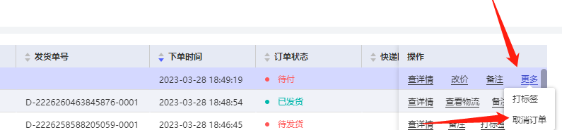 客户下单后一直未付款也无法联系到客户,商家如何从后台取消订单?