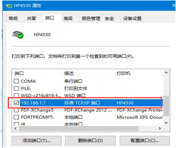添加好之后要把当前打印机的端口配置为TCP/IP端口