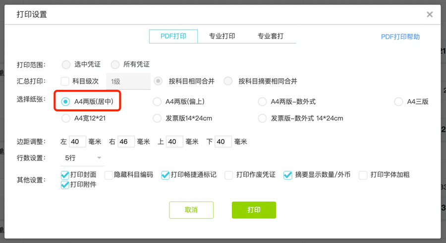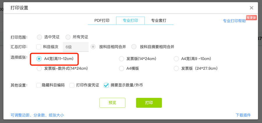 【问题现象】如何使用A4纸张打印2张凭证或者打印1张凭证呢?