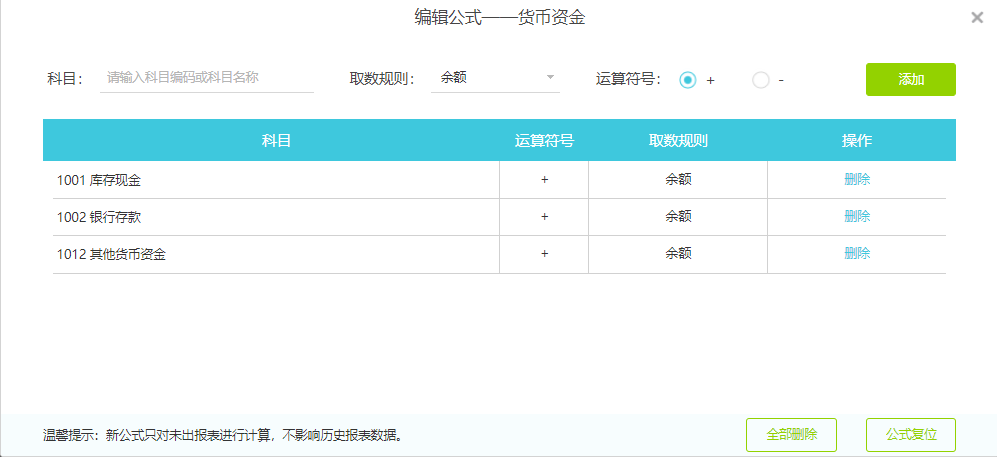 资产负债表上显示货币资金的余额,一般是库存现金、银行存款、其他货币资金三个科目的期末余额合计相加,但是日记账模块只能显示库存现金和银行存款的明细数据。