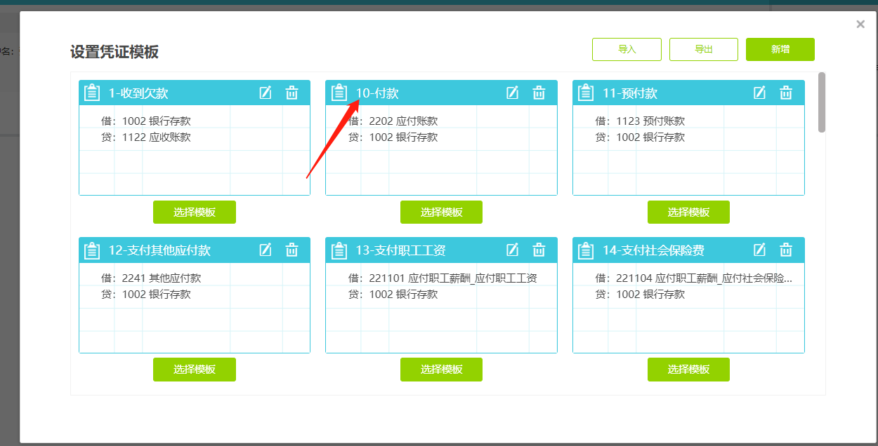 一、导入日记账选择预制的或者自己新增的凭证模板步骤如下: