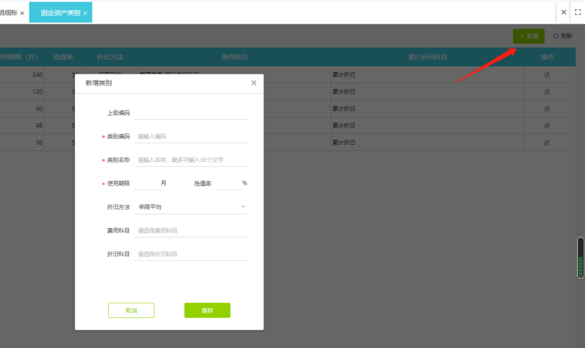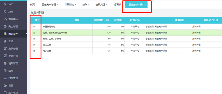 3.如果录入的资产类别编号系统中没有,也是可以新增资产类别,然后再填入固资资产卡片导入表中再去导入。