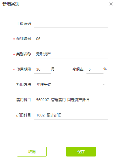1、点击【固定资产】—【固定资产类别】,新增固定资产类别